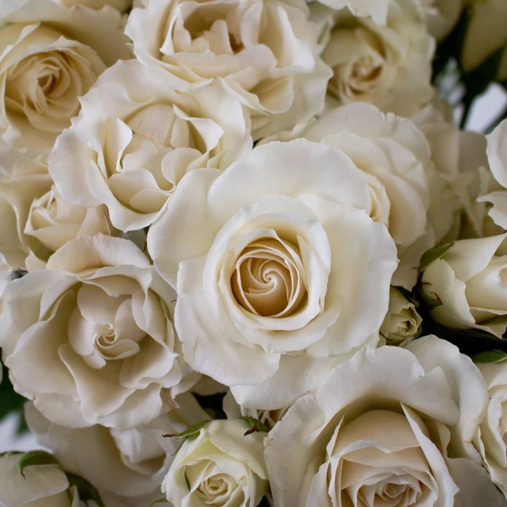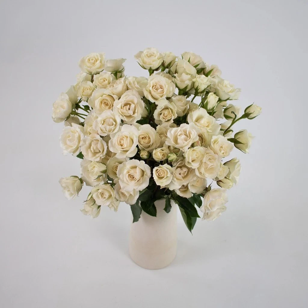 Find Creamy White Spray Bulk Roses by shopping FiftyFlowers! Whether combined with standard roses or arranged with other flowers, these creamy white, ruffled spray roses will add a stunning touch to any wedding bouquet, table centerpiece or flower arrangement.