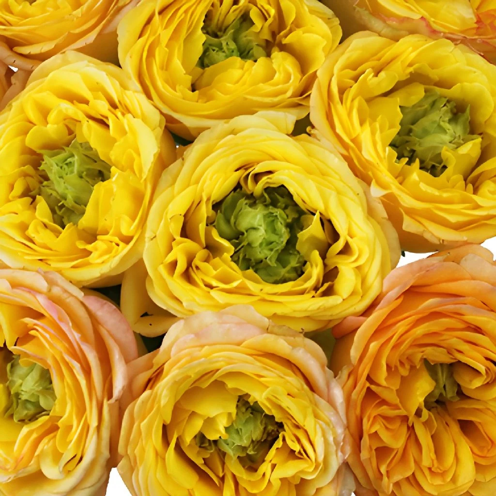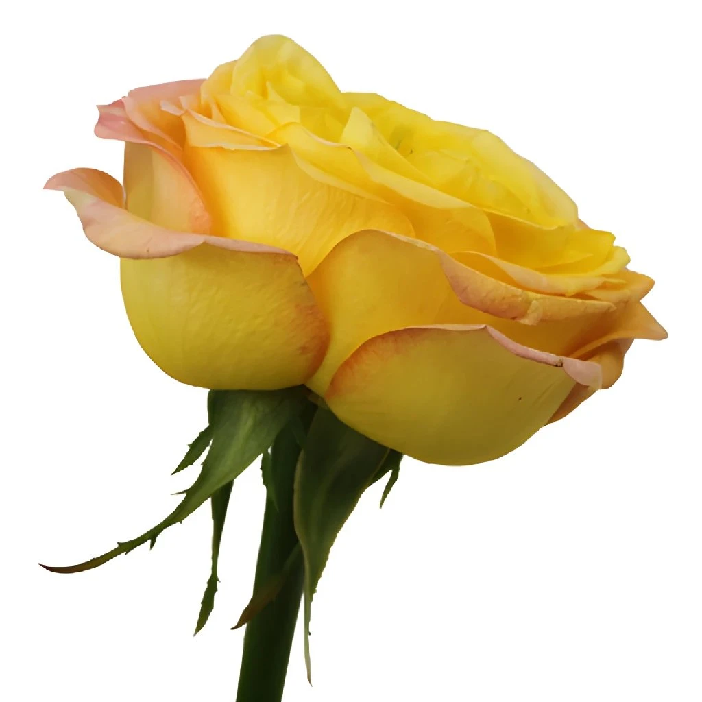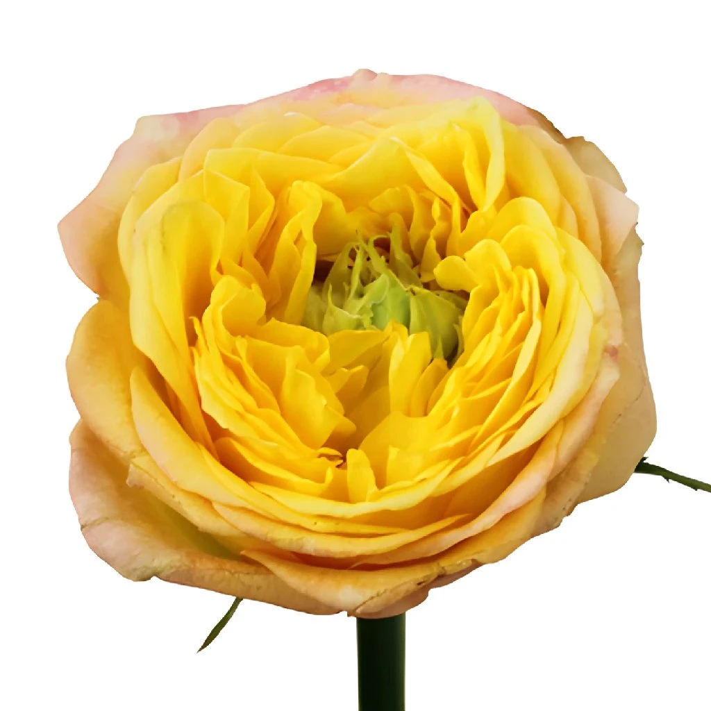 The Daybreak Darling Green Eyed Garden Rose is a striking gold rose with pink traces along the outside of each petal. This rose gently unfurls to reveal a stunning whorl of green at its center. Ancient legend has it that the green eye will ward off evil and bring forth luck and love. Unique and beautiful, these roses look great on their own or arrange them with stock apricot flower, white sweet peas and fiddlehead ferns or bells of Ireland. Offered at wholesale pricing, these roses are delicately packed at our partner farms before being shipped directly to you.