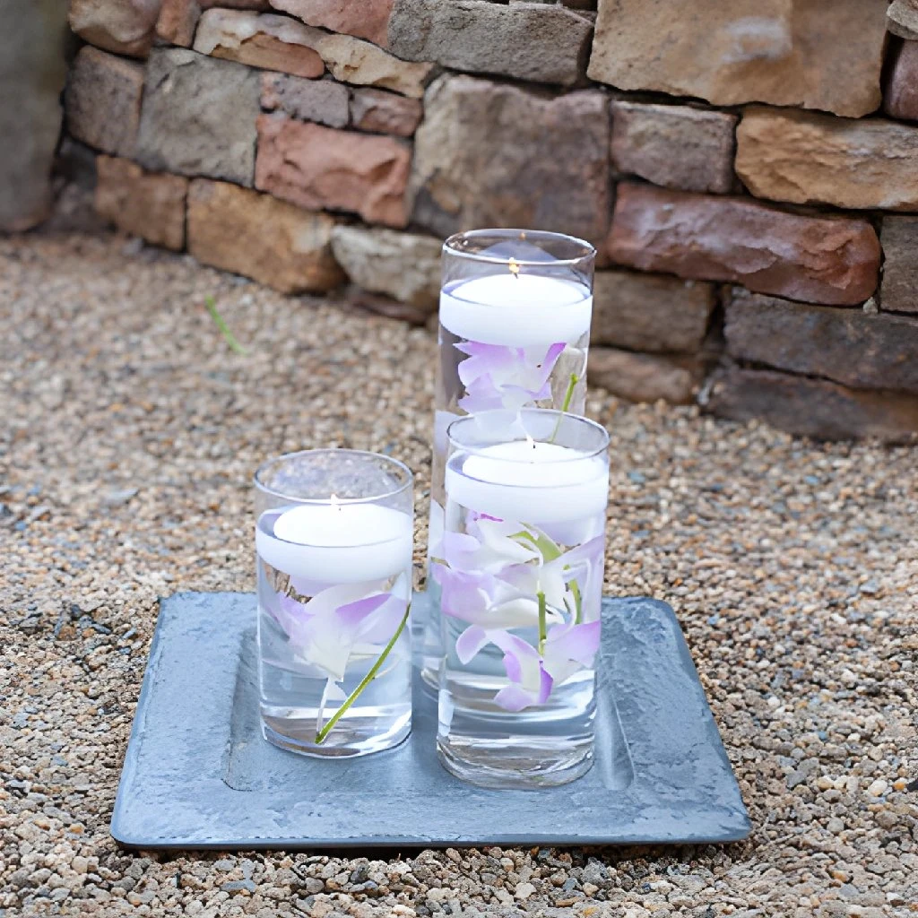 FiftyFlowers is pleased to offer an exclusive floral arrangement set that includes 50 dendrobium orchids and 14 set of 12 tri-tiered cylinder pillar vases. This assemblage is just what you need to arrange striking centerpieces for weddings, fundraisers or gala events. With this combination you can submerge the orchids, choose to weigh them down with stones, or float a candle above the stems to create a more ethereal effect.